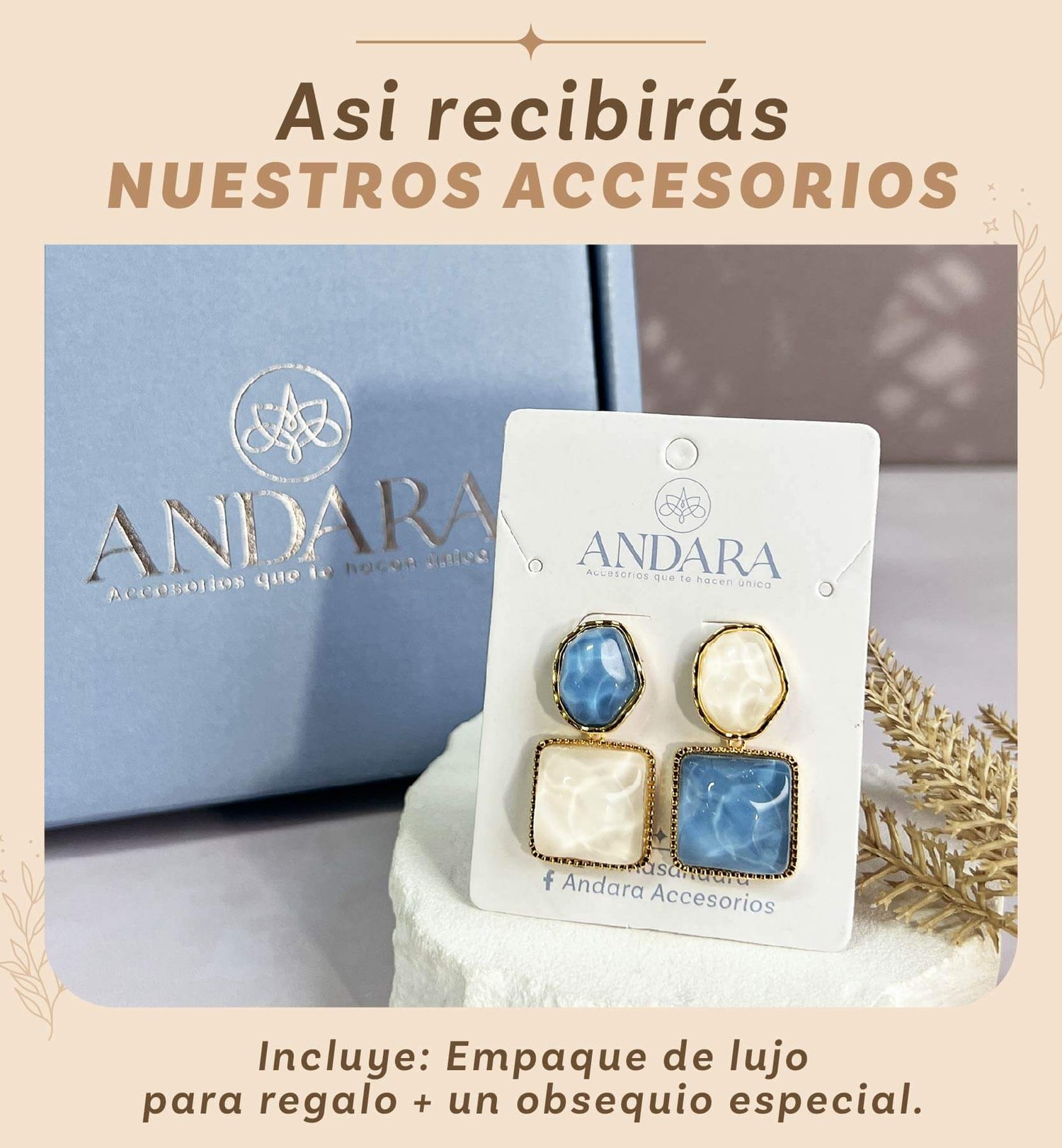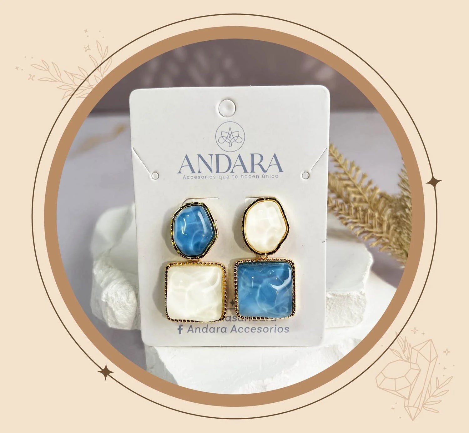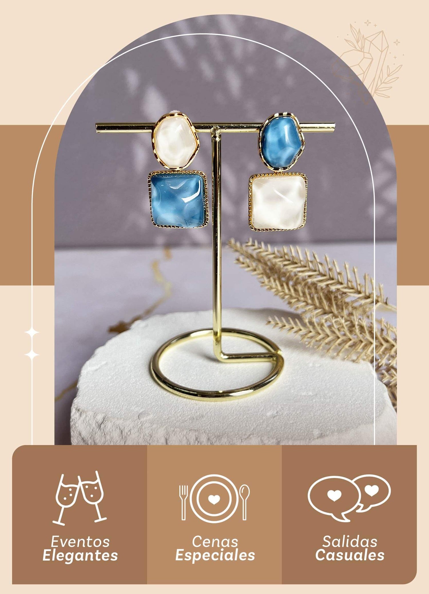 Nuestros aretes Ondas Especiales destacan por su diseño fluido y su contraste encantador, donde los tonos azul y marfil evocan serenidad, equilibrio y frescura. Son el toque ideal para realzar tu estilo con una elegancia moderna y auténtica, mientras reflejas seguridad y sofisticación.