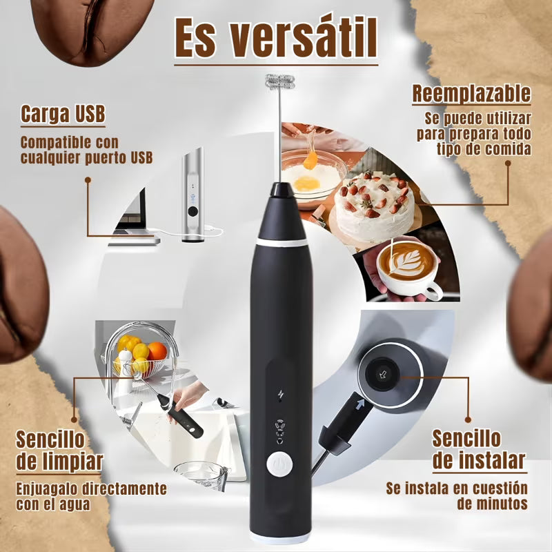 Ligero, silencioso y recargable por USB. Con solo un toque,este batidor crea espuma para capuchinos, lattes o malteadas de manera práctica y sencilla.